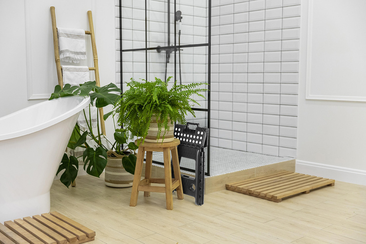 - SKLÁDACÍ – taburet byl navržen tak, aby ve složeném stavu zabíral velmi málo místa, její uložení není problém . Díky tomu zabírá málo místa, když se nepoužívá.
